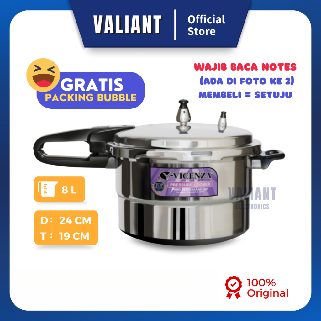 Vicenza Pressure Cooker Panci Presto 24 CM V324 [8 LITER GAGANG HITAM]