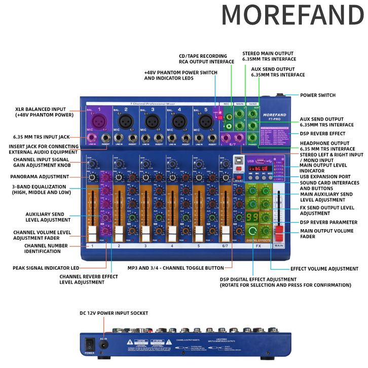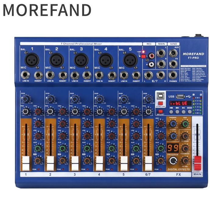 Morefand F7 Pro Profesional Mixer Audio 7Channel /Pc/Mp3 Mixer With 48V Phantom Power And Usb