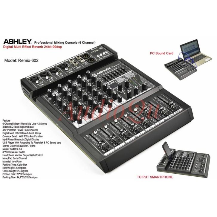 REMIX-602 MIXER 6 CHANNEL ASHLEY ORIGINAL / MIXER 6 CHANNEL 4 MONO 2 STEREO / REMIX602 ASHLEY