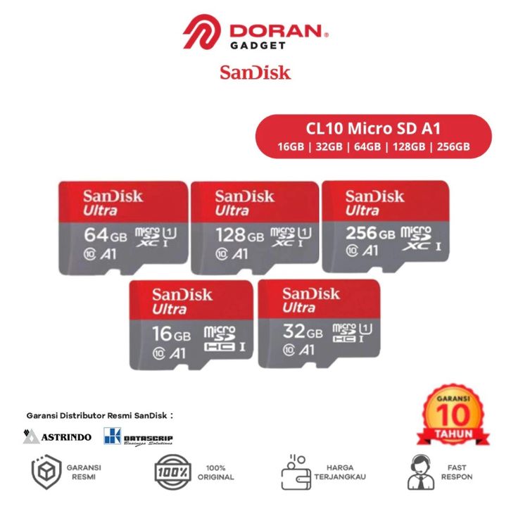 memory card sandisk samsung 128gb 512gb murah Sandisk Micro SD 16GB 32GB 64GB 128GB 256GB Ultra A1 UHS-I Up to 140Mbps