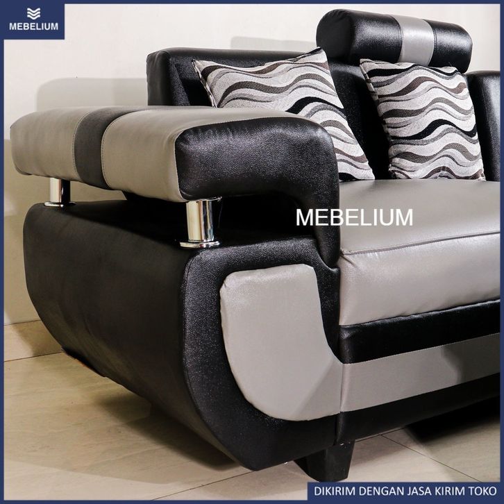 Jabodetabek Sofa L Optix Set Kulit Oscar 2+2+1 + Meja | Rangka Kayu Blockteak – Anti Air & Rayap