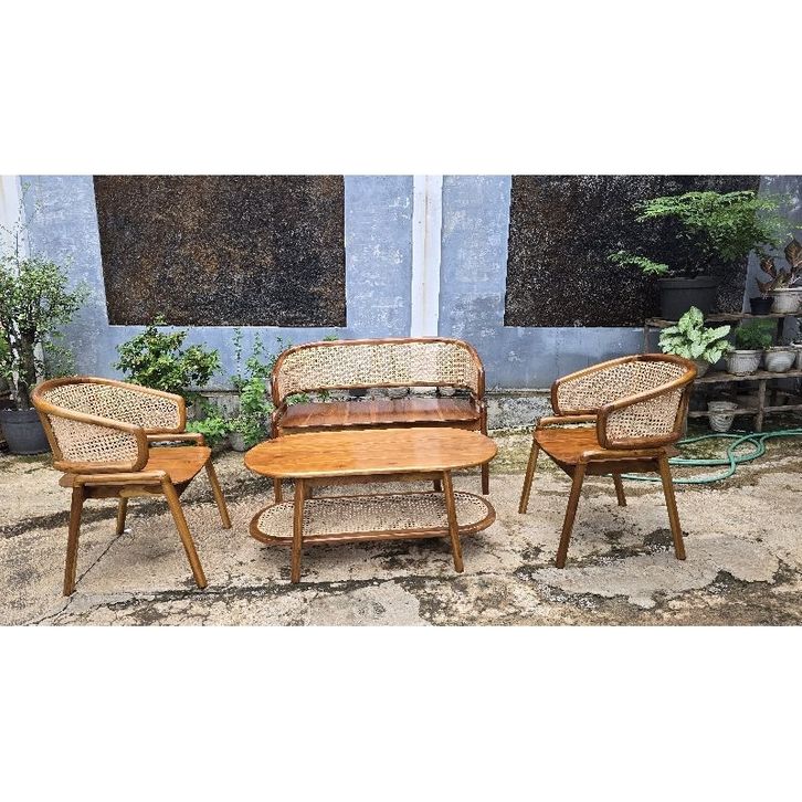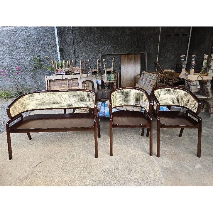 Set Kursi Teras Kursi R Tamu Jati Retro Rotan Finishing - Kursi Makan Cafe Resto Cleopatra Kursi minimalis