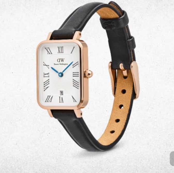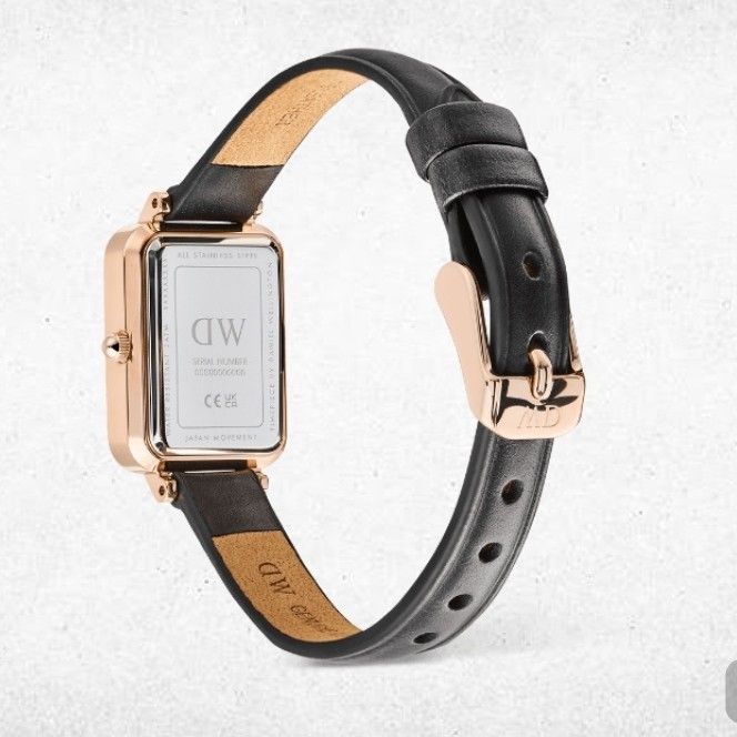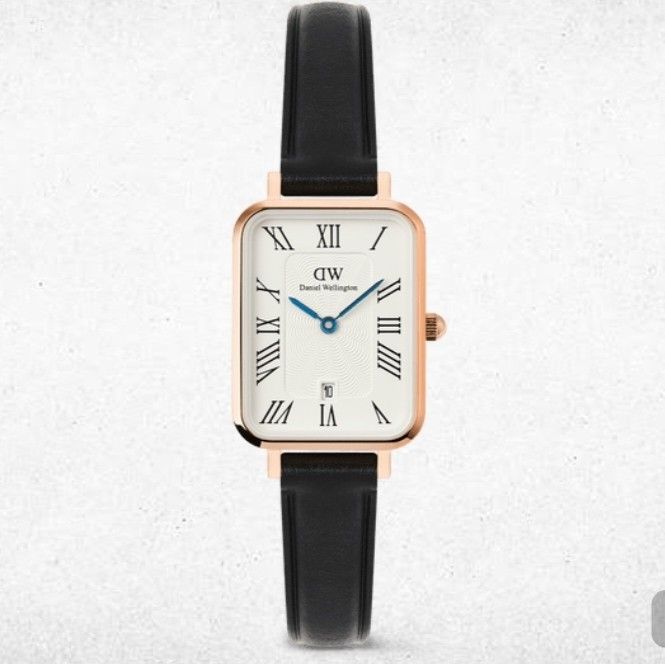 JAM TANGAN WANITA DANIEL WELLINGTON QUADRO PRESSED ROMAN NUMERALS ROSEGOLD BLACK WHITE LEATHER FREE ONGKIR - FREE BOX