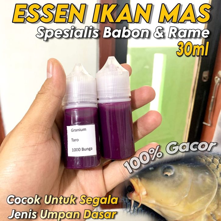 Essen Ikan Mas Babon Rame Aroma Amis Wangi Granium Taro 1000 Bunga Asli Paling Gacor, Essen Oplosan Paling Ampuh Segala