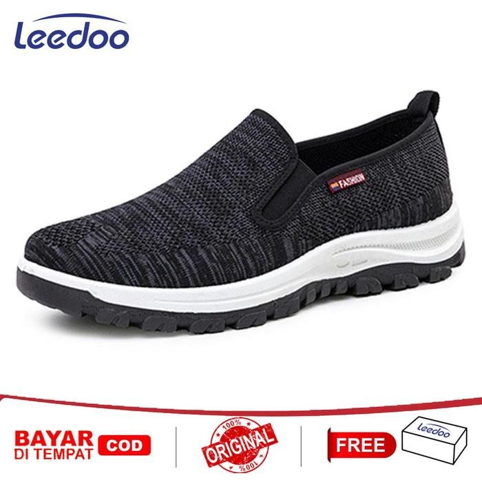 TERLARIS LEEDOO SEPATU SLIP ON HITAM PRIA SEPATU SANTAI KASUAL SEPATU SNEAKERS PRIA SHOES MR135 HITAM 41