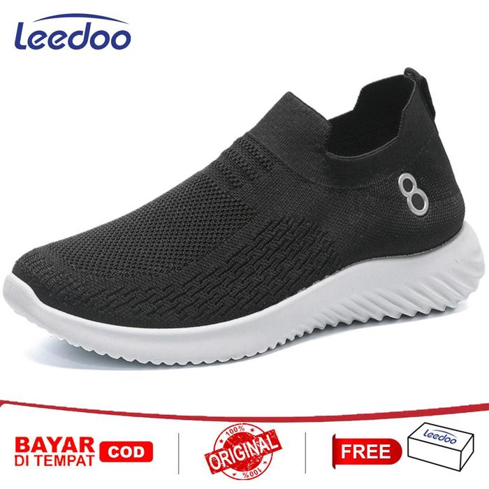 TERLARIS LEEDOO SEPATU COWOK SLIP KEKINIAN SEPATU RUNNING SNEAKERS OUTDOOR COWOK SEPATU SLIP ON SPORTY MR151 HITAM 39