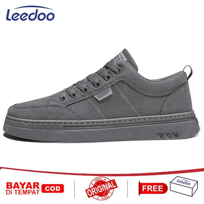 TERLARIS LEEDOO SEPATU SNEAKERS KARET PRIA SEPATU FORMAL PRIA KULIAH KERJA CASUAL FASHION PRIA TALI SHOES MC414 ABU ABU 39
