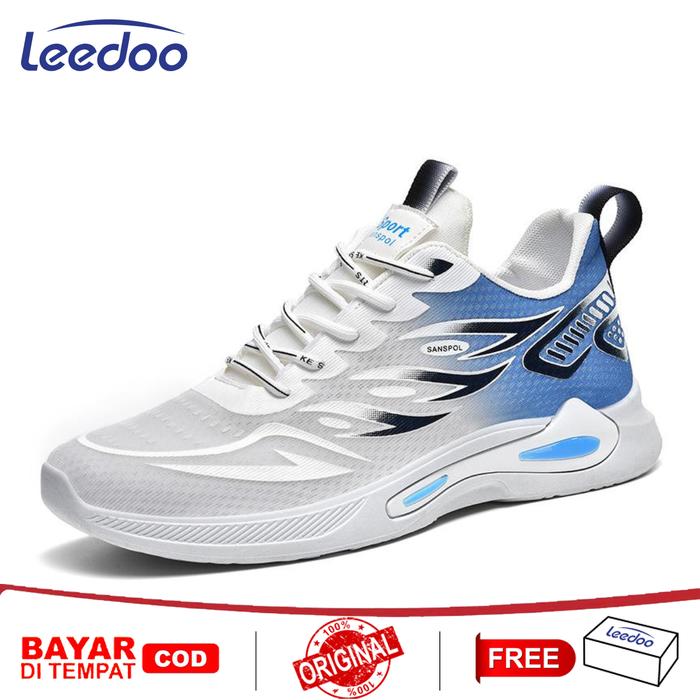 TERLARIS LEEDOO SEPATU OLAHRAGA PUTIH PRIA SNEAKERS COWOK LARI OUTDOOR SEPATU PRIA CASUAL SPORT SHOES KARET MR222 BIRU PUTIH 39