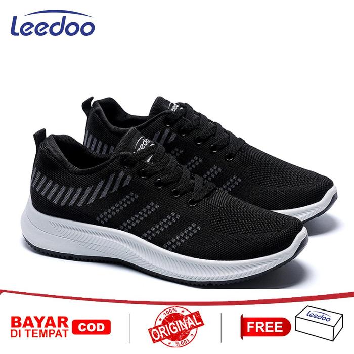 TERLARIS LEEDOO SEPATU SNEAKERS HITAM PRIA SEPATU COWOK CASUAL SEPATU RUNNING SPORT FASHION SEPATU OLAHRAGA SEPATU SEKOLAH SISWA MR164 HITAM 39