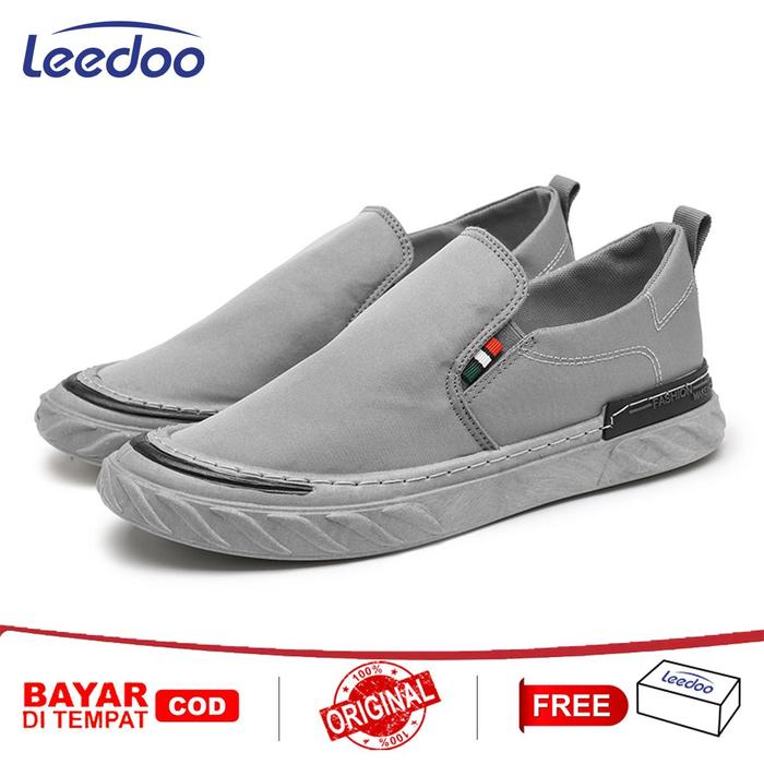 TERLARIS LEEDOO SEPATU SLIP ON PRIA CASUAL KARET SEPATU KANVAS SEPATU KERJA SEPATU PRIA FASHION RUNNING SHOES MC119 HITAM 39