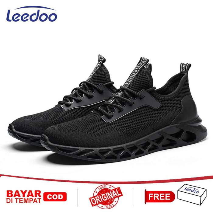 TERLARIS LEEDOO SEPATU RUNNING PRIA SEPATU PRIA CASUAL KARET SNEAKERS SPORT SHOES HITAM SEPATU SEKOLAH SISWA MR206 HITAM ABU 39