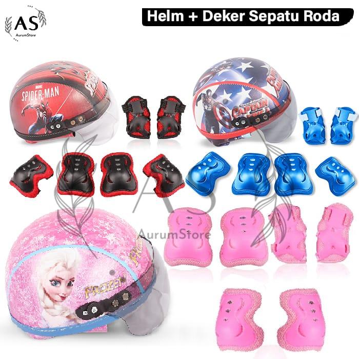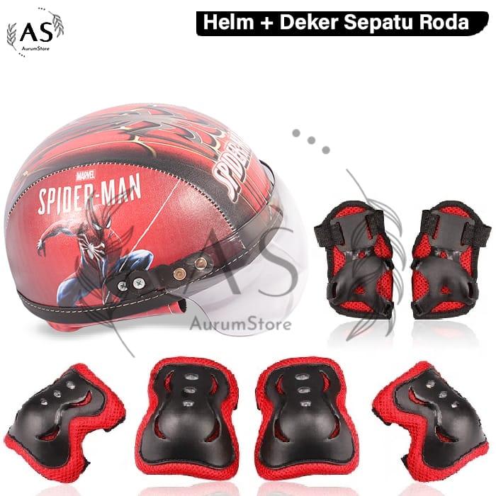 TERLARIS HELM + DEKER SET INLINE SKATE SEPATU RODA MURAH MERAH