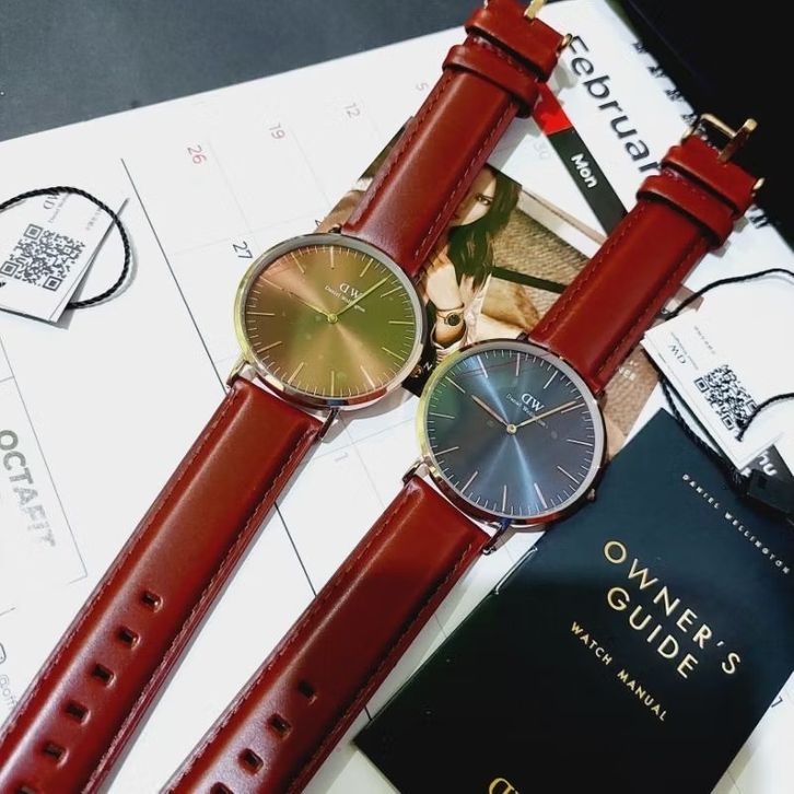 JAM TANGAN PRIA DANIEL WELLINGTON MAWES ARCTIC BLUE MAWES AMBER BROWN LEATHER - FREE ONGKIR