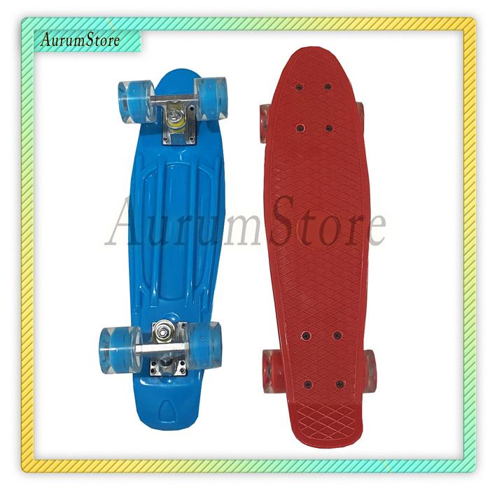 TERLARIS PENNYFISHBANANA BOARD PENNYBOARD FISHBOARD PU LED WHEELS MURAH BIRU