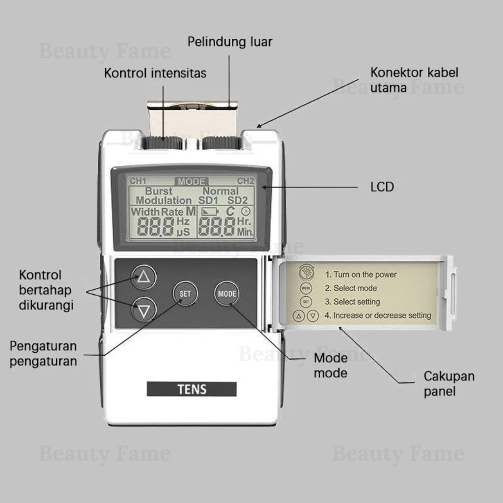 Beauty Fame GARANSI 1 TAHUN Alat Ter tens R-C101l TENS /EMS Tens Alat Pijat Elektronik Model TENS 7000 Transcutan