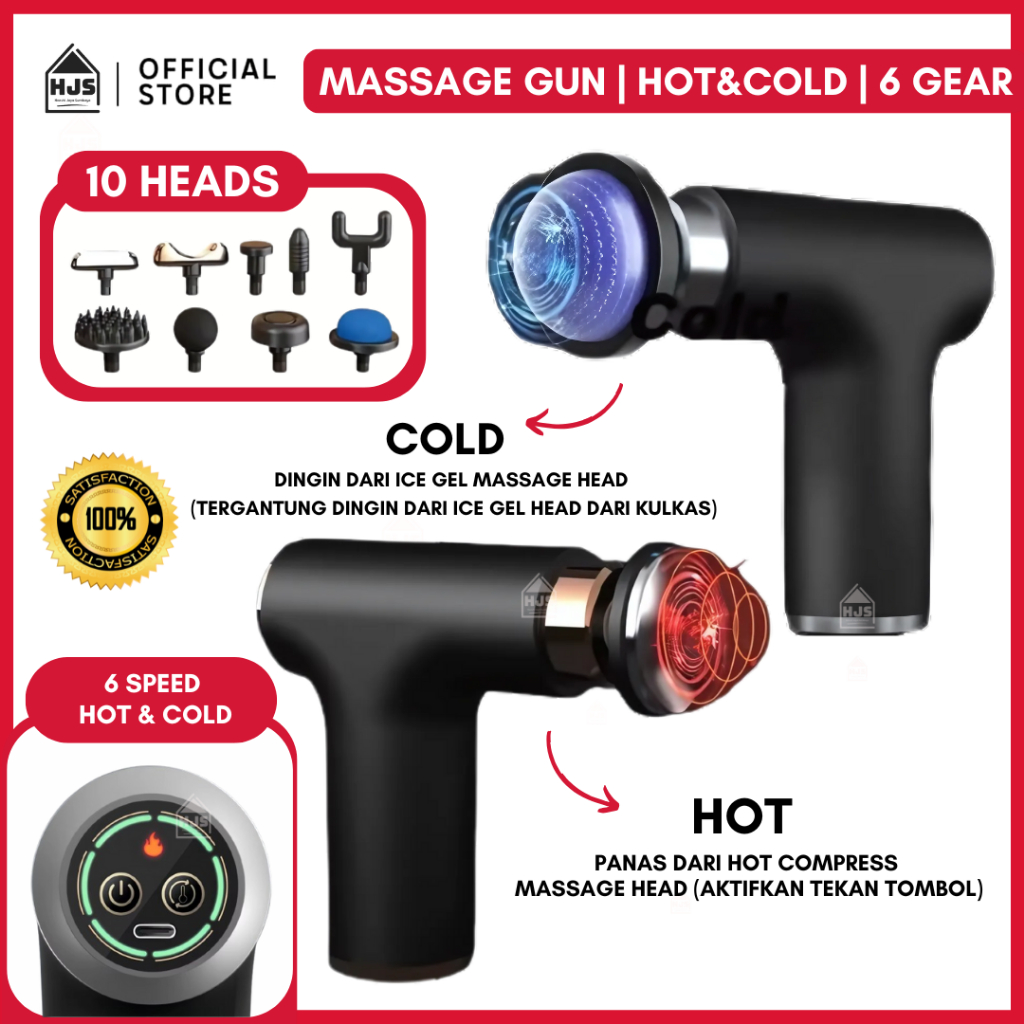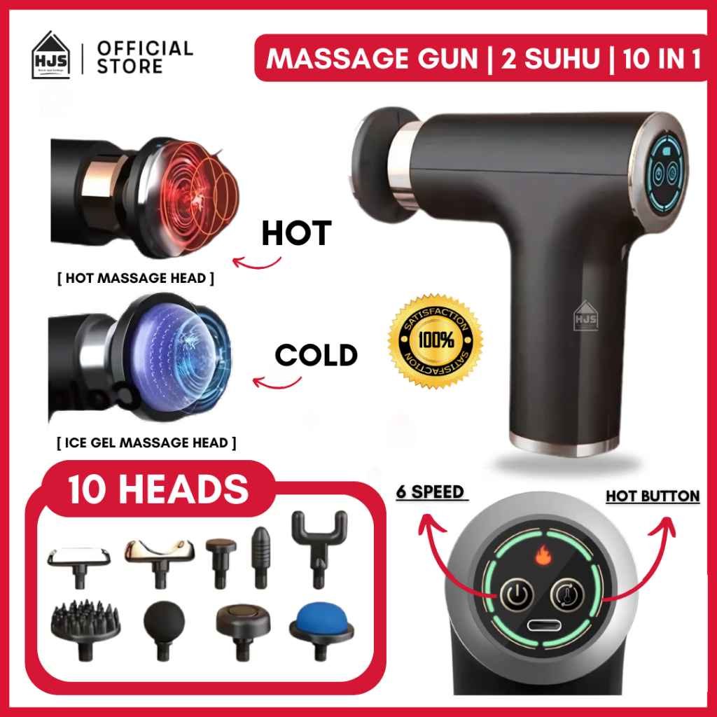 [HJS] Alat pijat elektrik Massage Gun 10 in1 & Cold / Hot Muscle Therapy Electric Deep Massage Tools