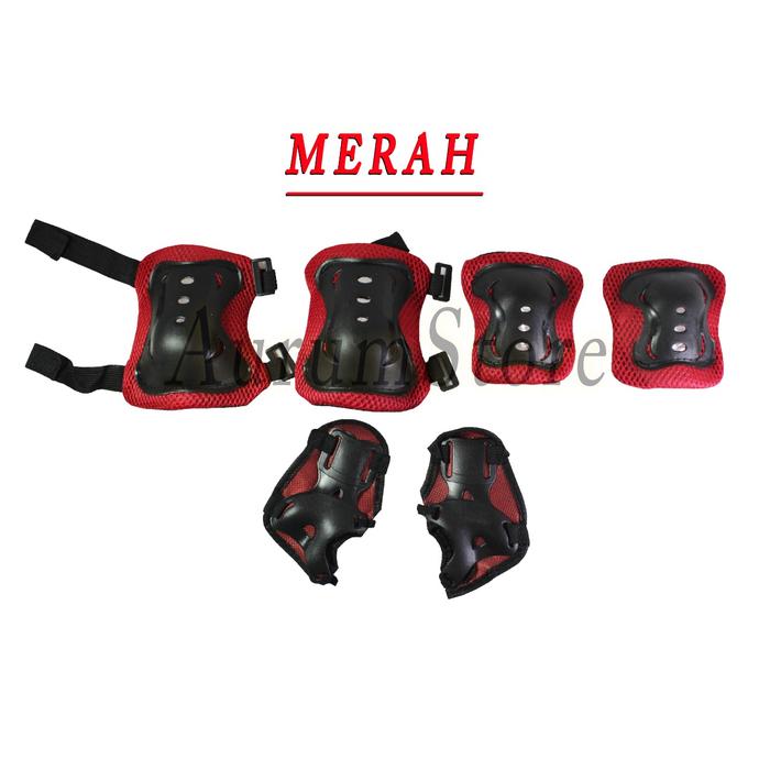 TERLARIS DEKER INLINE PELINDUNG LUTUT SIKUT SEPATU RODA SEPEDA OLAHRAGA ANAK MERAH