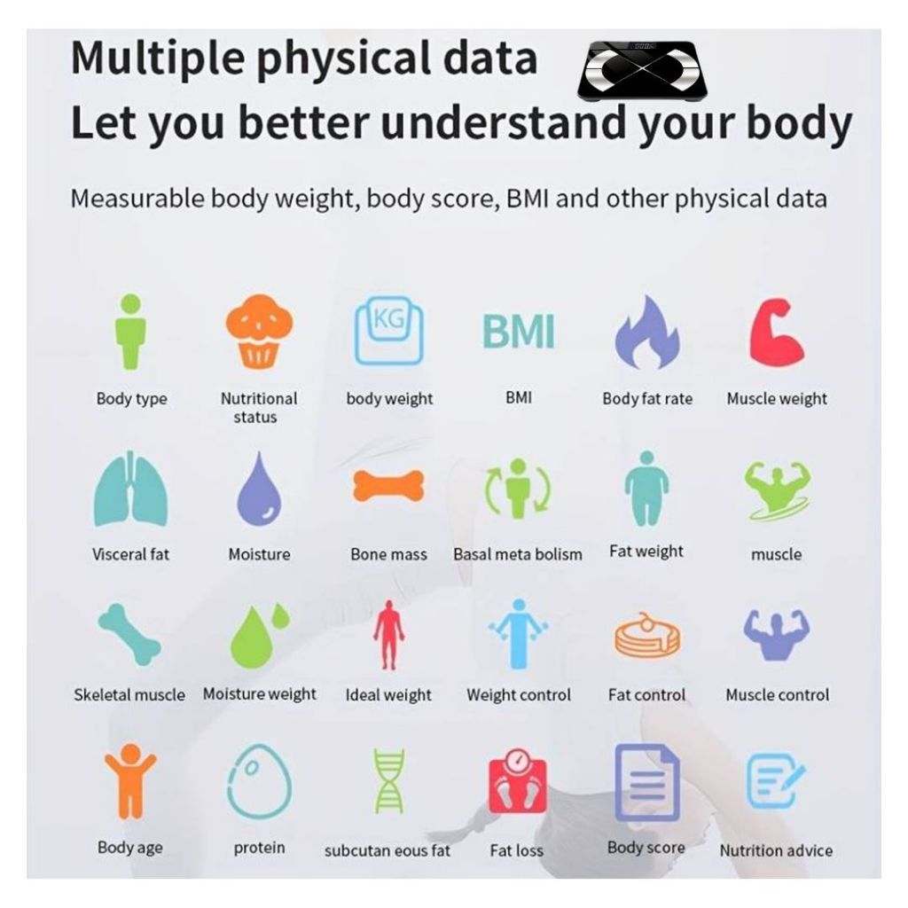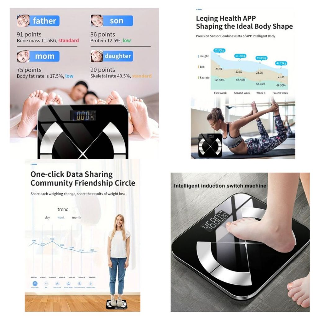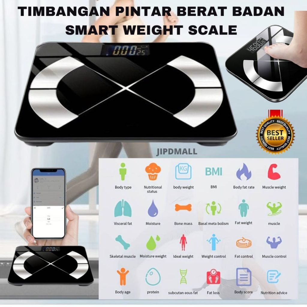 Jipdhealth Timbangan Pintar Berat Badan Body Fat Muscle Mass BMI Kadar Air tubuh Digital SMART Scale Multifungsi CS952.S