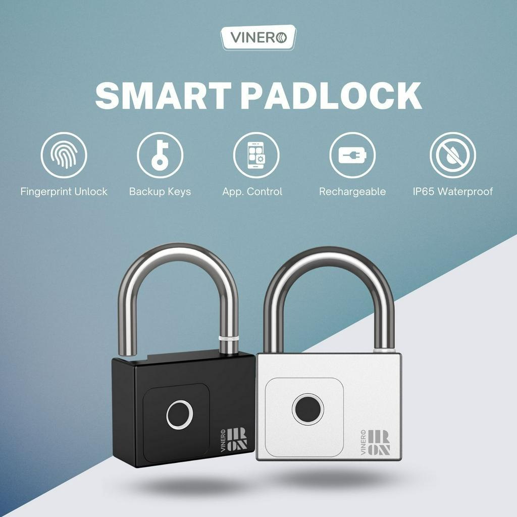 Vinero Iron Smart Padlock Fingerprint Bluetooth Water Resistant IP65