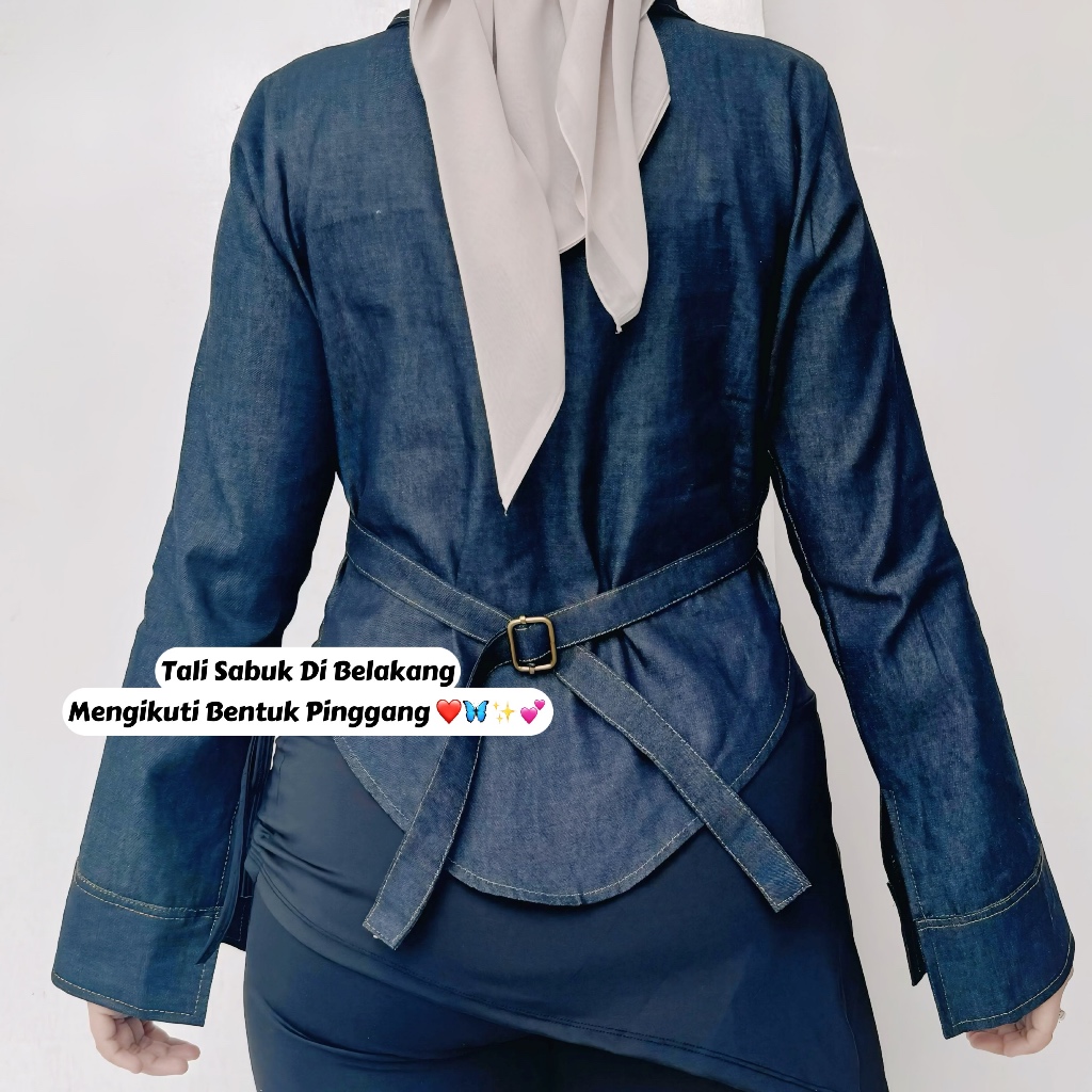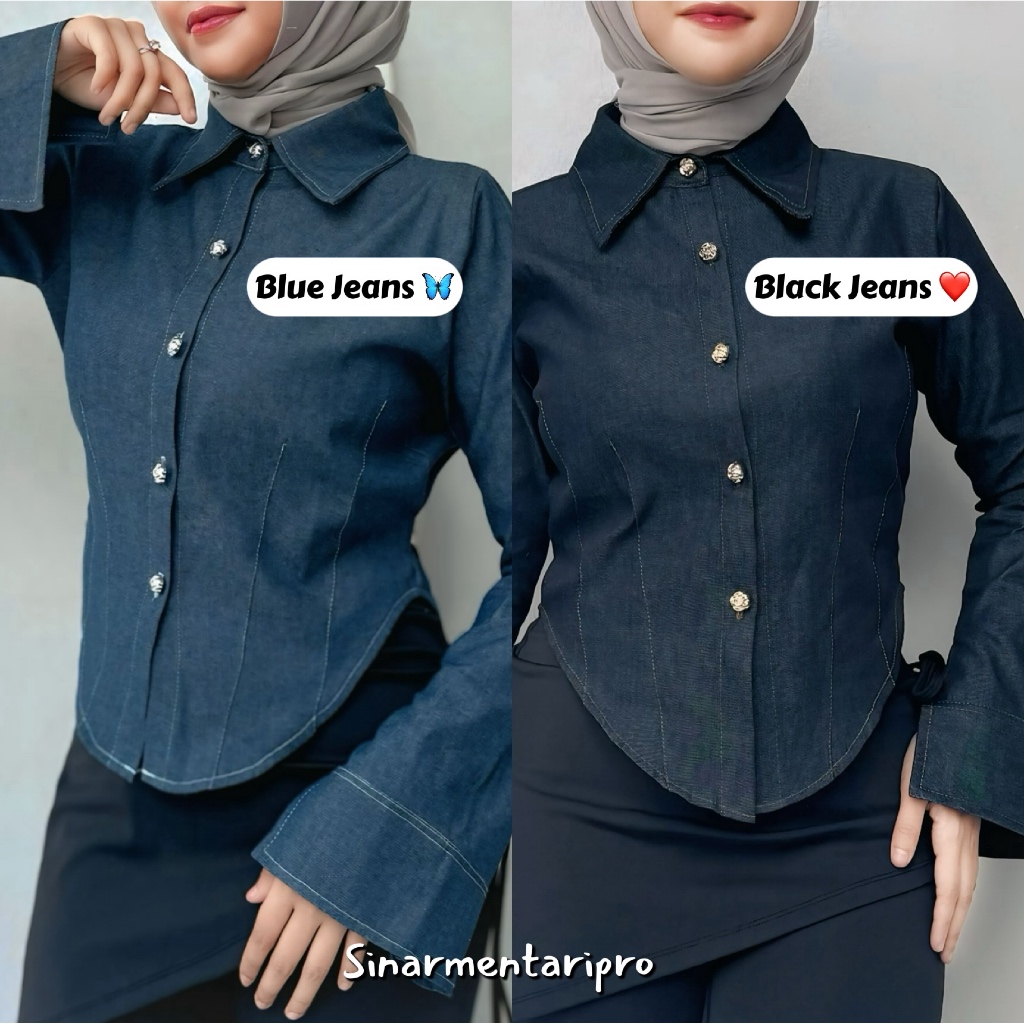 SMPRO - JEANS BAJU KEMEJA OVAL JEANS Kancing Bunga Baju Atasan Wanita Jeans Tebal Tangan Panjang -