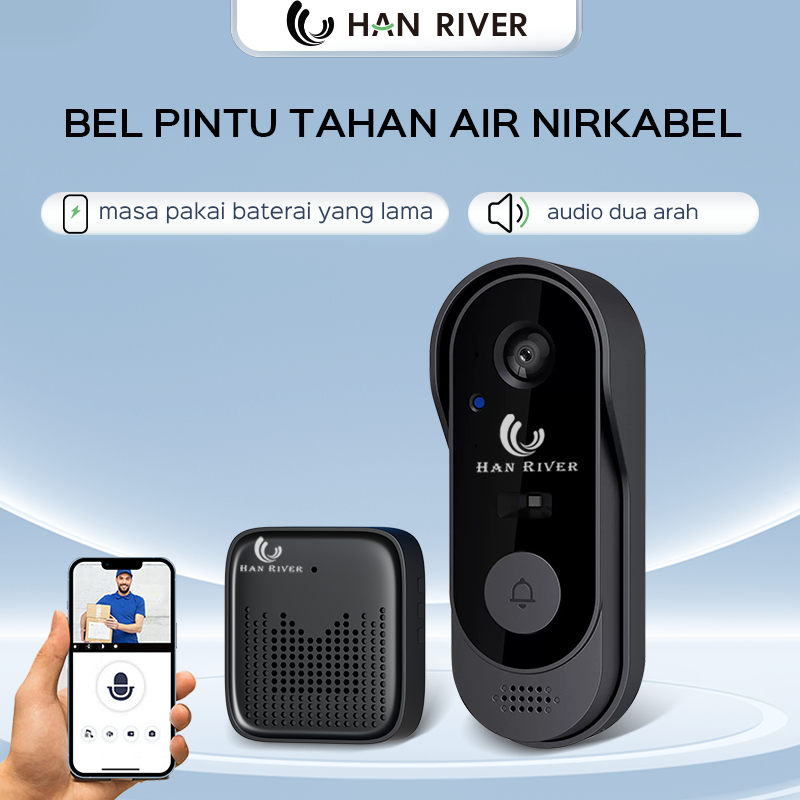 HAN RIVER Bel Rumah Tanpa Kabel WIFI HD Night Vision Multifungsi IP66 Waterproof Doorbell Pintu 1 Receiver