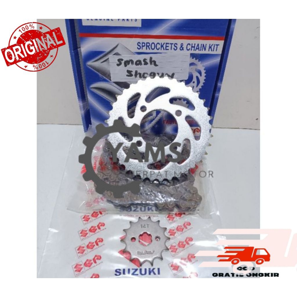 Gear Set Suzuki + Rantai Smash Untuk Motor Smash, Smash New, Shogun 125, Shogun Rr Dan Shogun 125 Sp Berkualitas