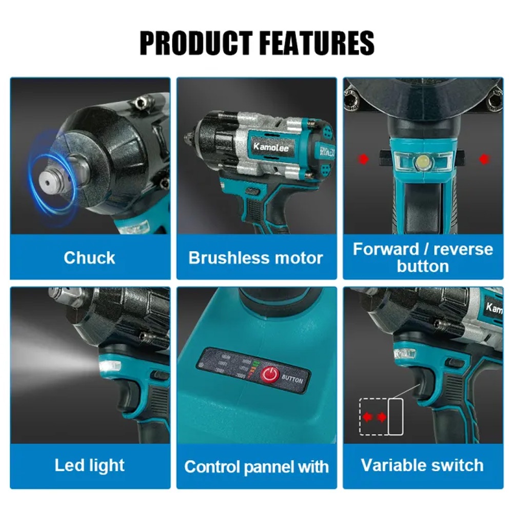 Kamolee DTW800 2100Nm 1/2'' Impact Wrench Brushless Motor【Garansi 3 Bulan】