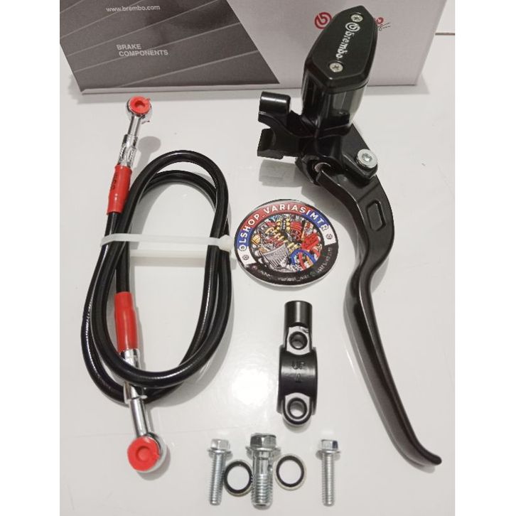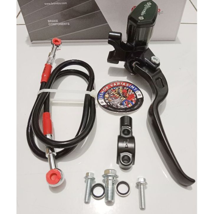 MASTER REM KANAN TABUNG OVAL KACA SMOKE+SELANG REM DEPAN SERAT HITAM 90CM UNIVERSAL