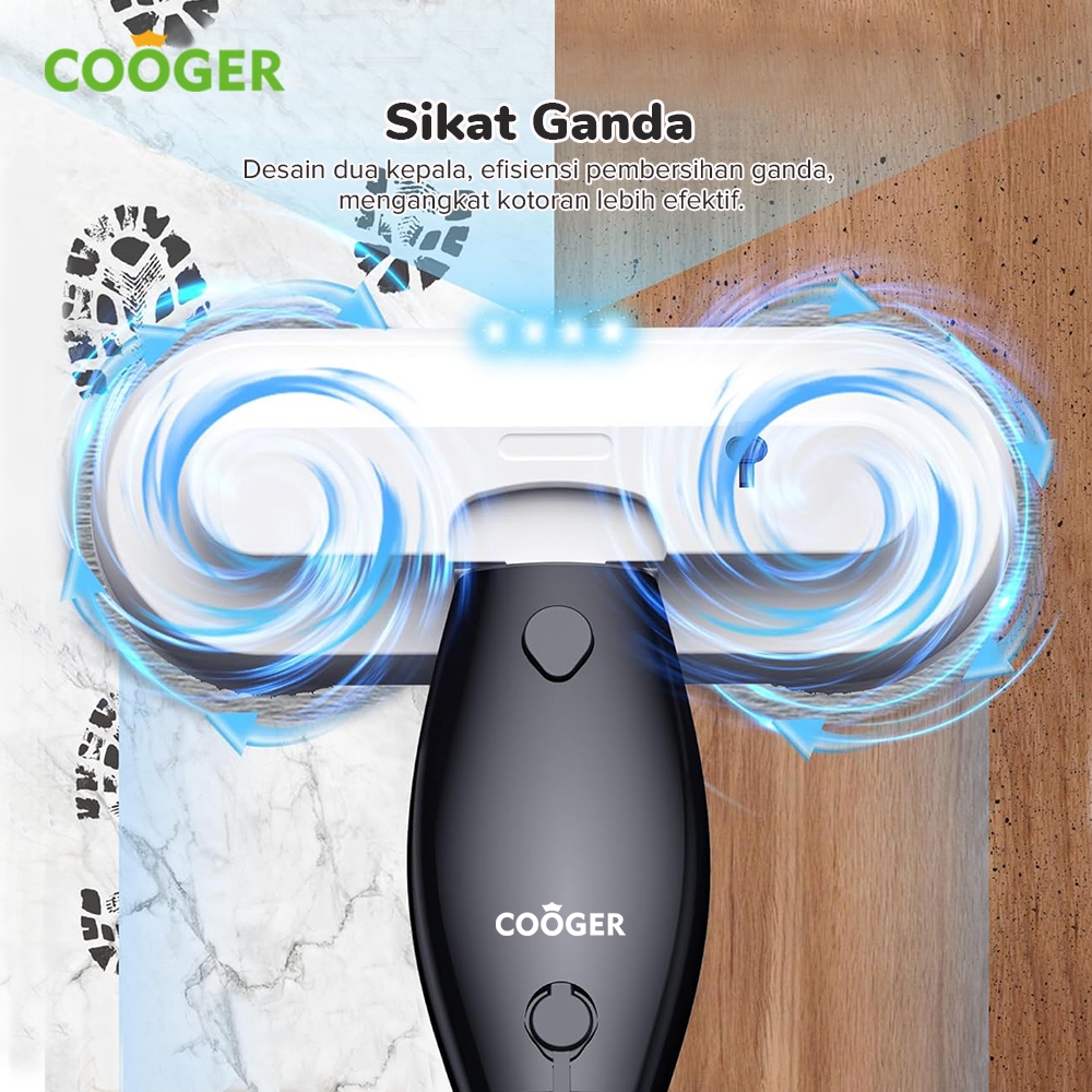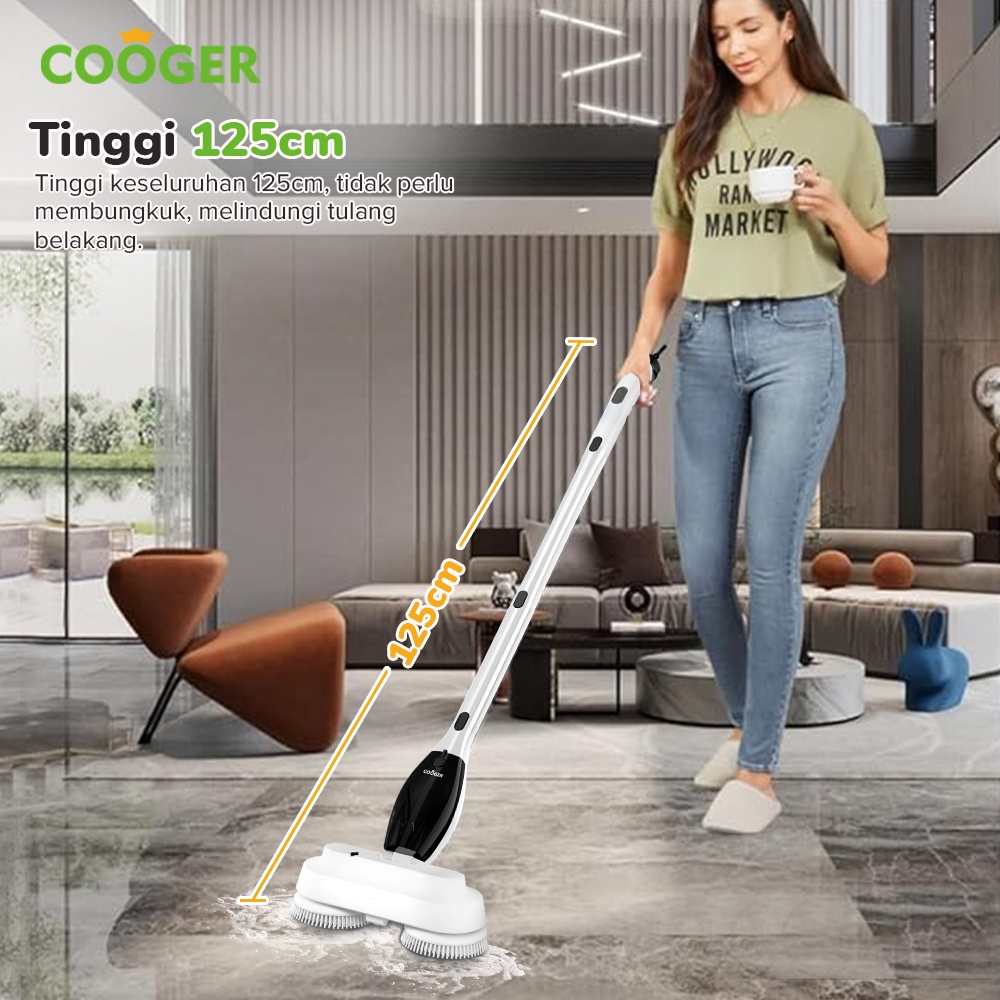 COOGER Homeliving Sikat + Pel Elektrik Ganda Pro Pembersih Double Brush Lantai Kamar Mandi 6in1 Waterproof Tahan Air IPX