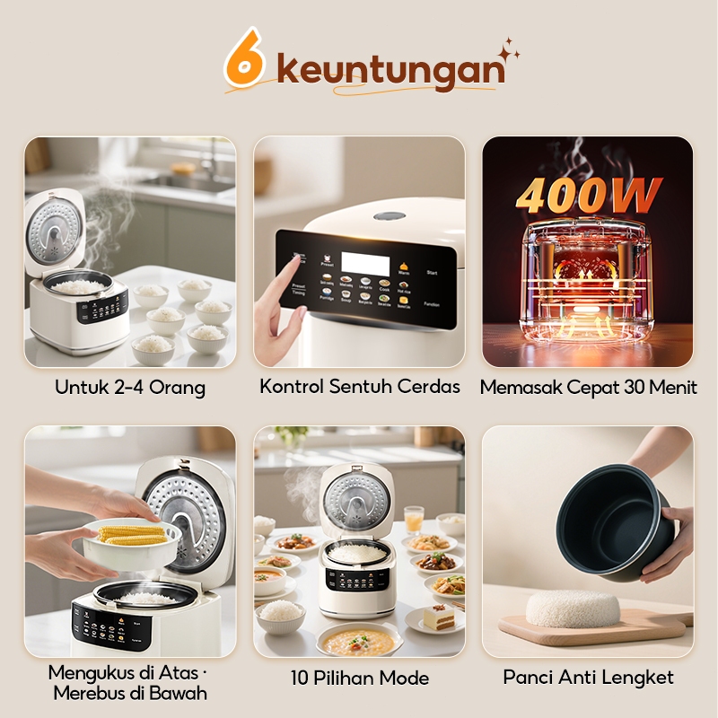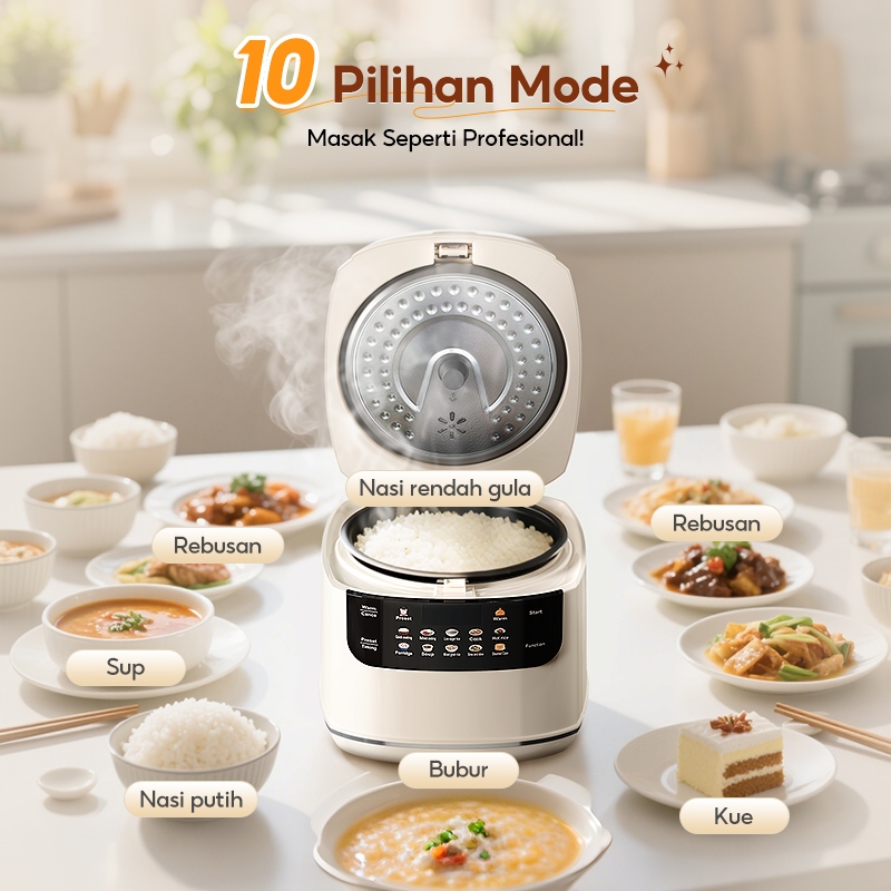 ALLTOU Digital Rice Cooker 2L Low Sugar Magic Com Penanak Nasi with 10 Fungsi Anti Lengket Anti Baret