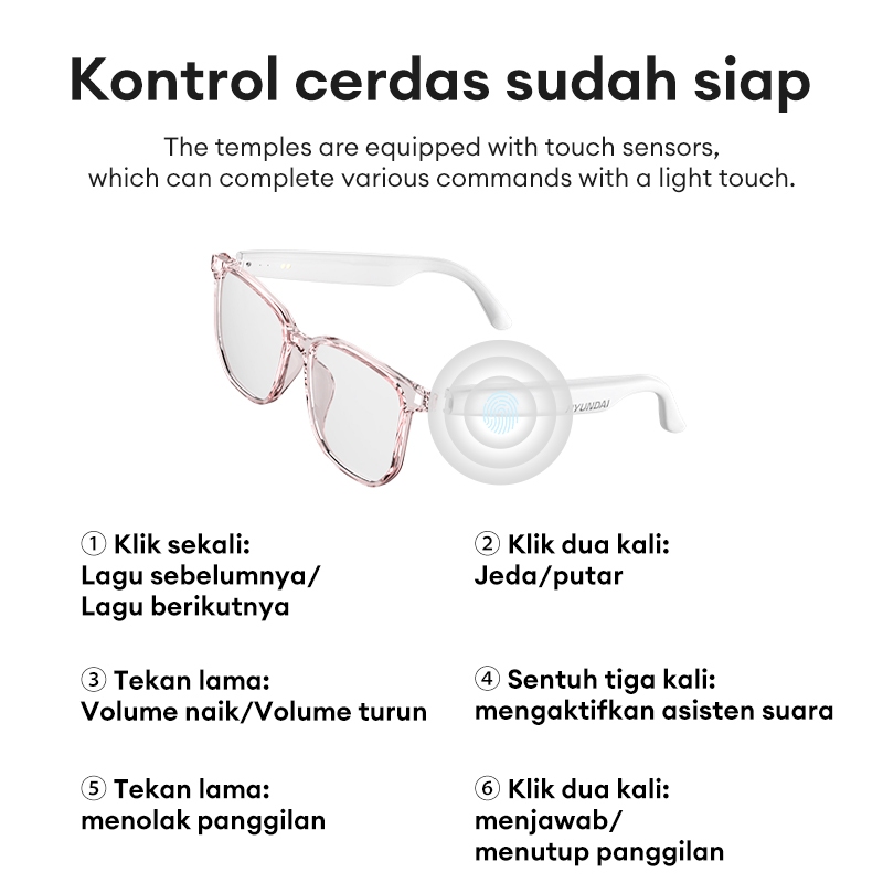 Hyundai HY-C8 PRO Kacamata Pintar Headphone Bluetooth 5.4 Kacamata Hitam Kacamata Bluetooth Cerdas Nirkabel