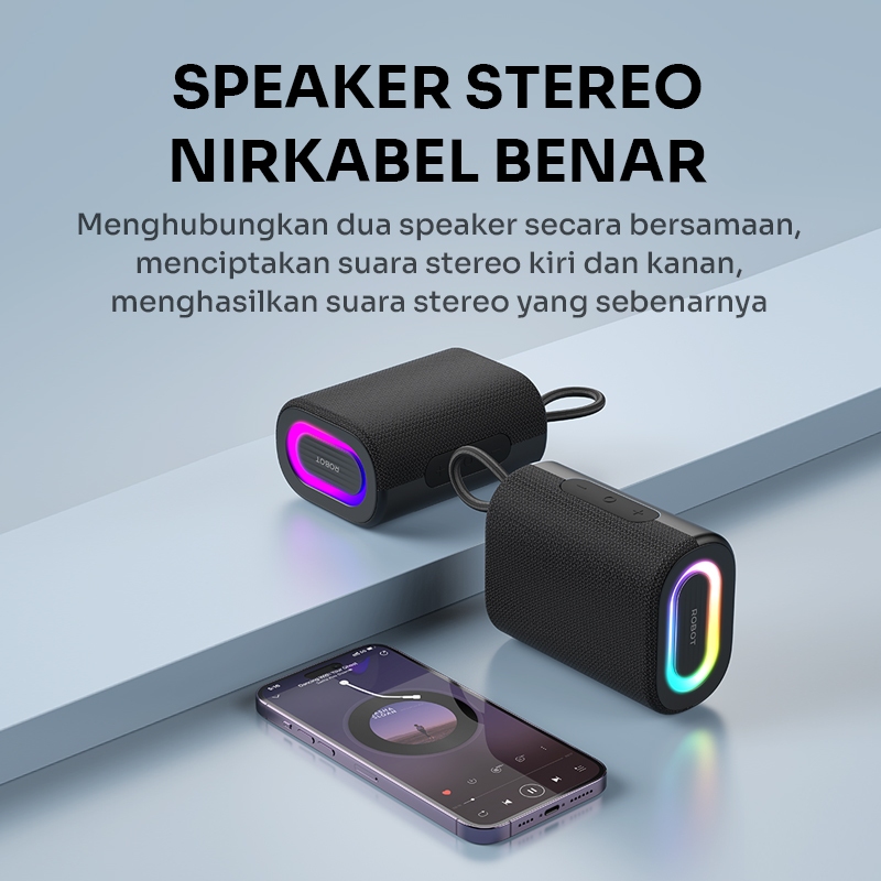 ROBOT RB190 Speaker Bluetooth 1200mAh 5.4 Portable Powerful Bass 5W Tahan Air IPX5 dengan Efek Lampu RGB dan Mode TWS