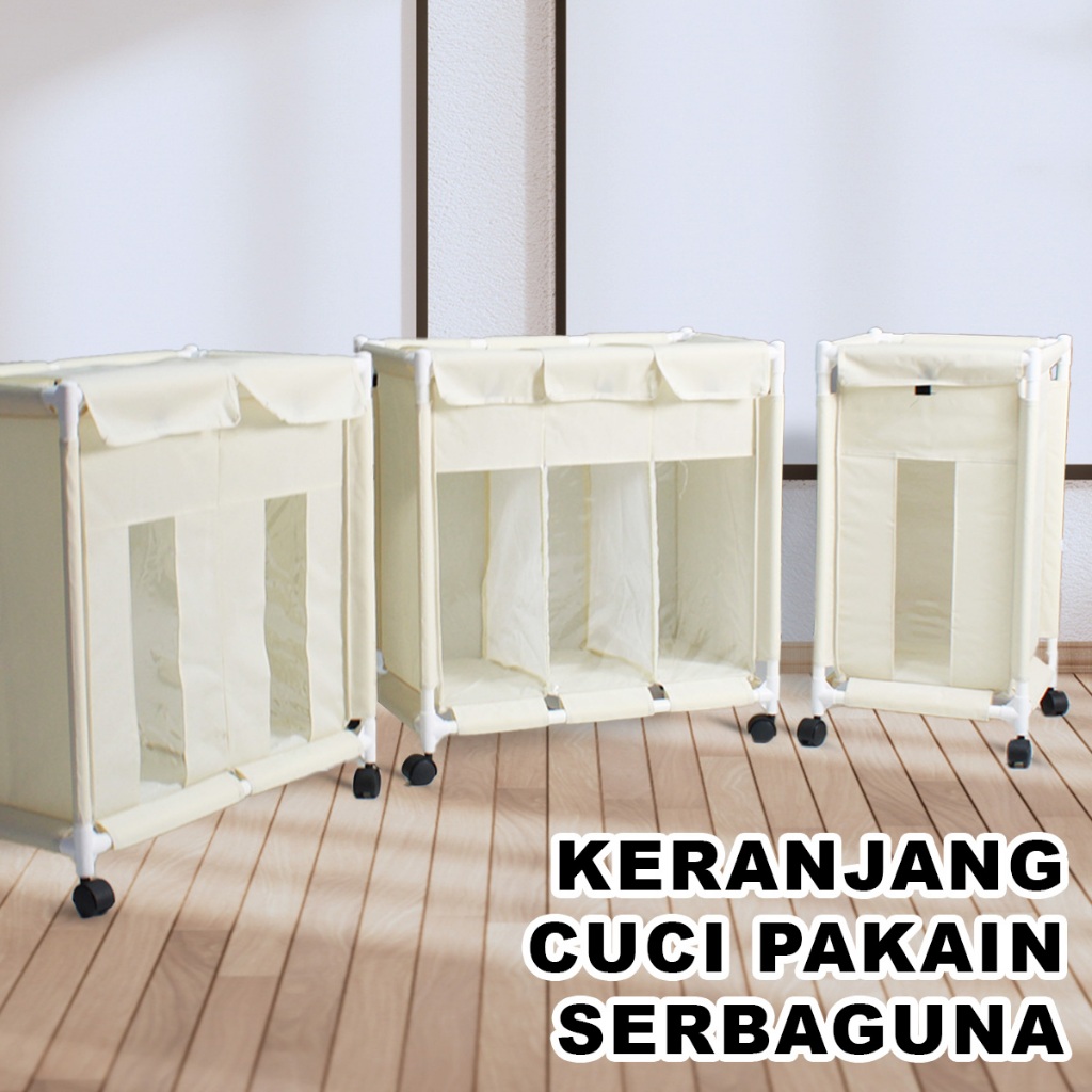 Keranjang Baju Kotor Dengan Roda Laundry Bag Pakaian Lipat Ruang Transparan Multifungsi XZ-23