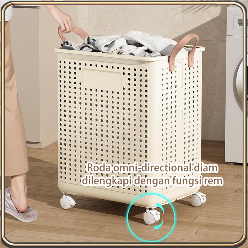 Kosong Baju Cuci Lipat Berroda - Folding Laundry Basket dengan Roda untuk Kamar Tidur