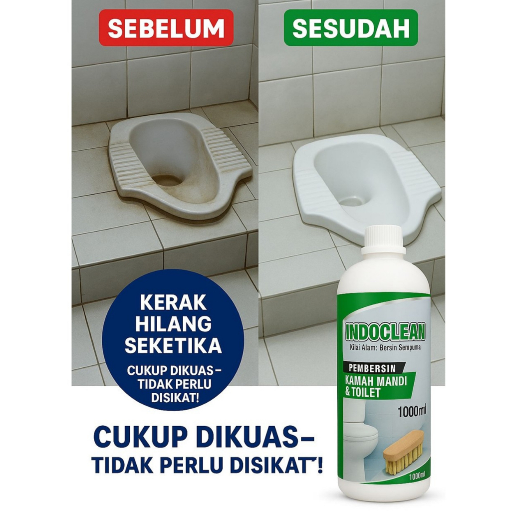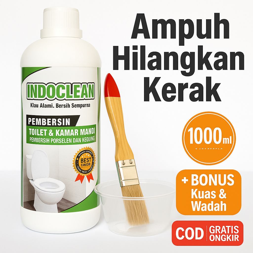 Indoclean 1000ml Pembersih Kamar Mandi Dan Toilet Cairan Anti kerak Untuk Lantai Keramik Bonus Kuas