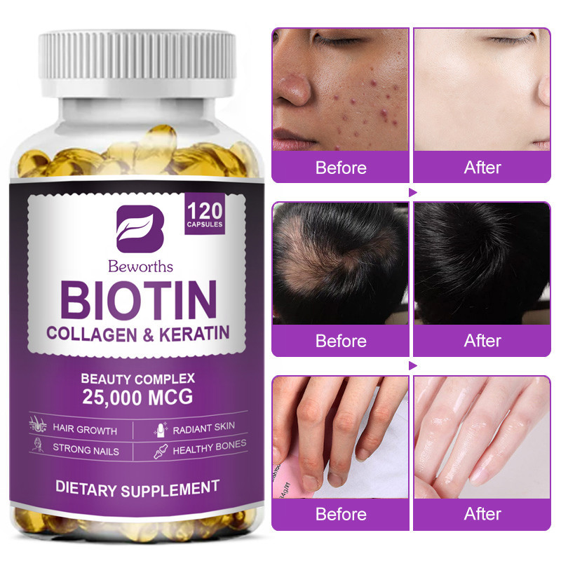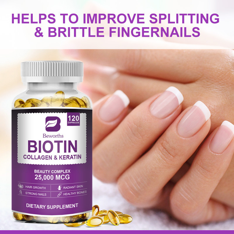 CICILAN TANPA DP BEWORTHS Biotin Vitamins Capsules with Collagen & Keratin 25000 mcg for Healthy Hair Nails & Bones Rad