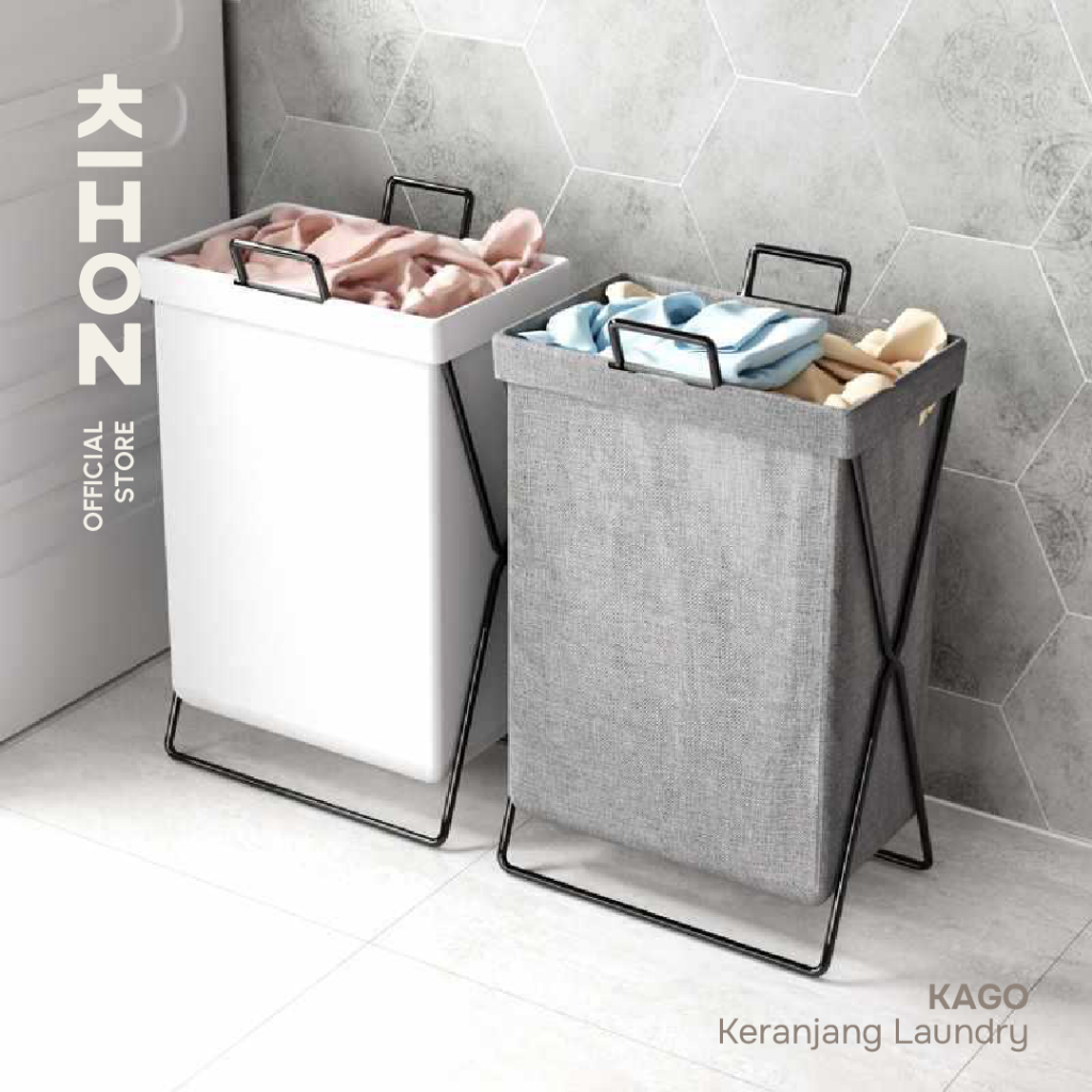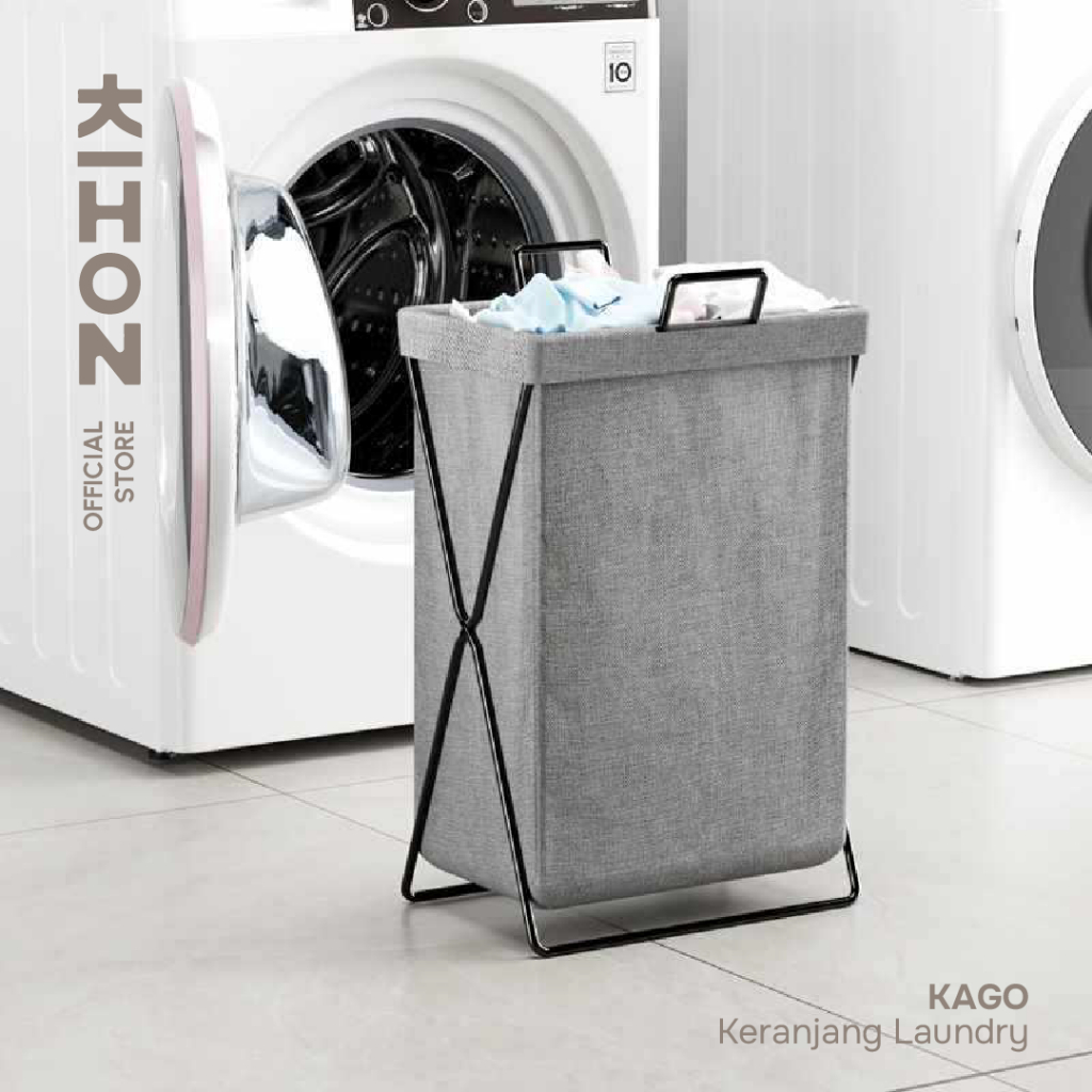 KIHON KAGO Keranjang Laundry Lipat Minimalis Dapat Dilipat Dilengkapi Rangka Besi Penyangga