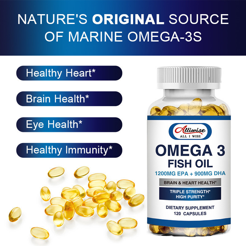 CICILAN TANPA DP Alliwise Omega 3 Fish Oil Capsules 3600mg EPA & DHA Fatty Acids Supplement Heart, Brain & Immune Suppor