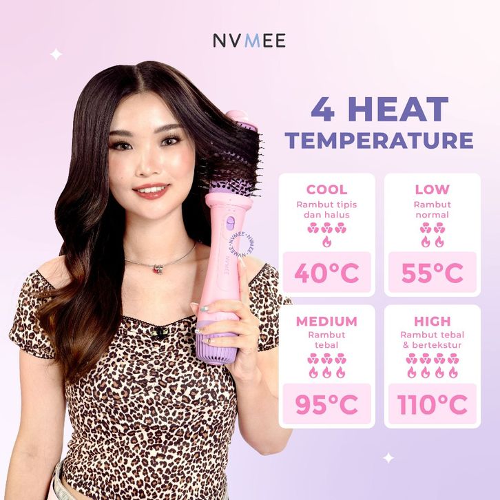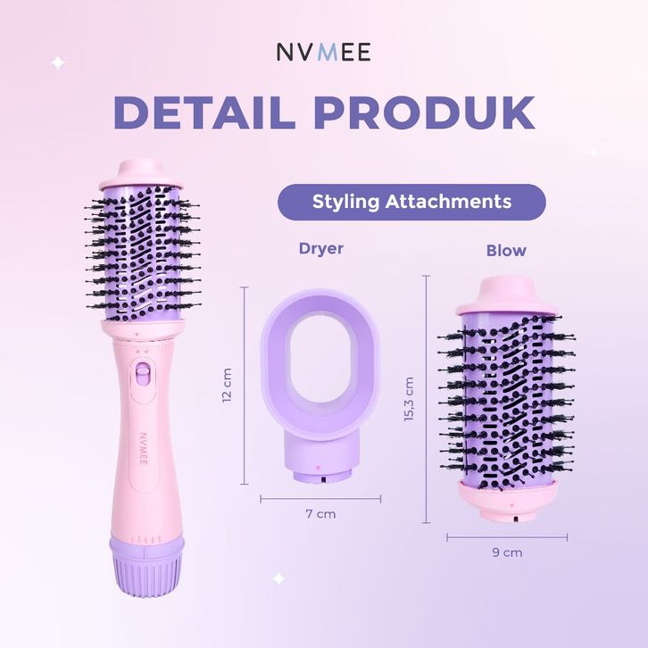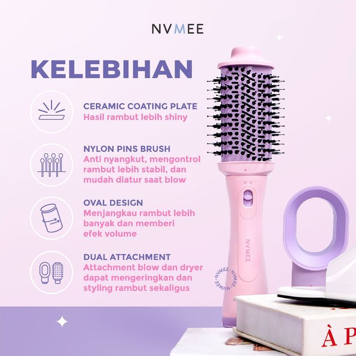 Sisir Blow Dryer Pengering Hot Air 2in1 Nvmee Low Watt Natural With Volume