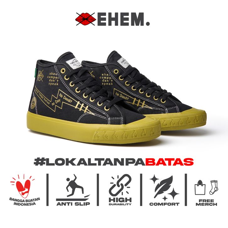 Sepatu Sneakers Ehem Unisex Pria Wanita Sketch High Black Size 36-44 Gratis Ongkir