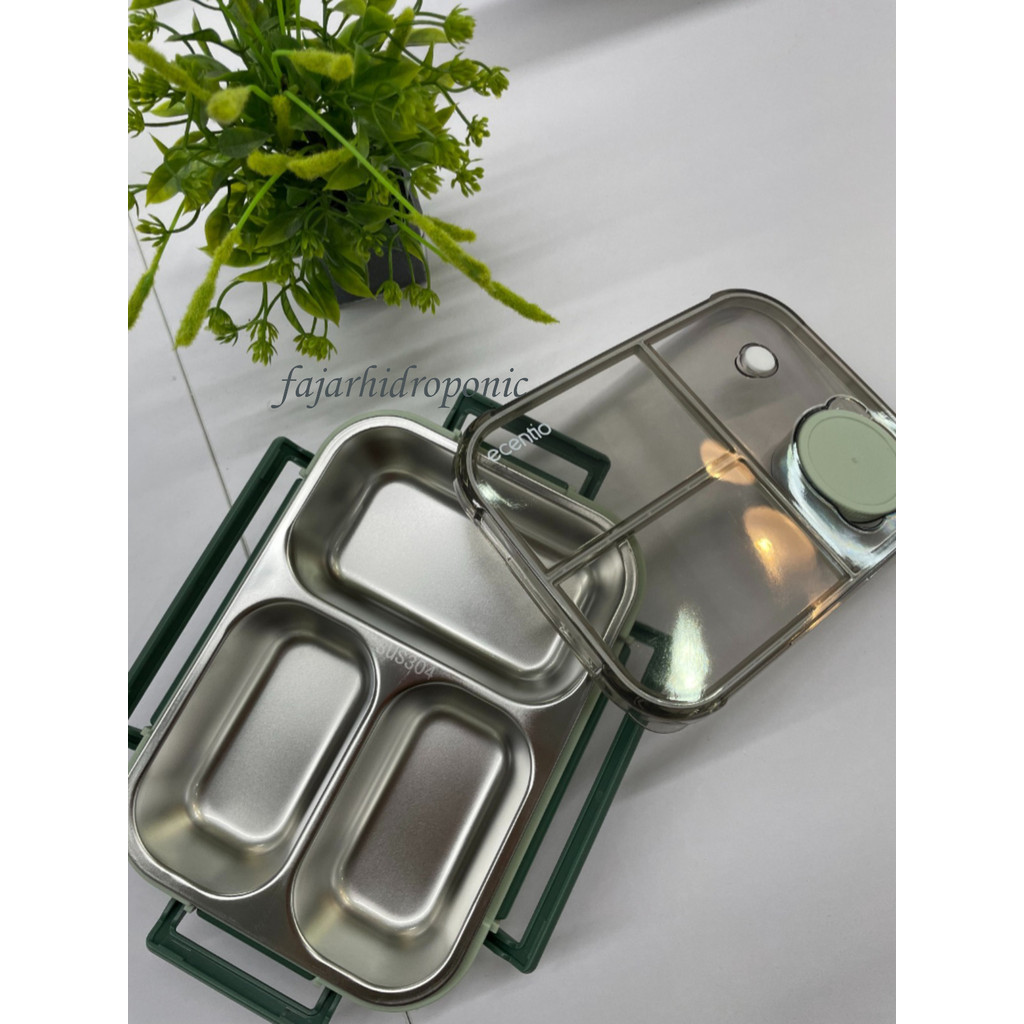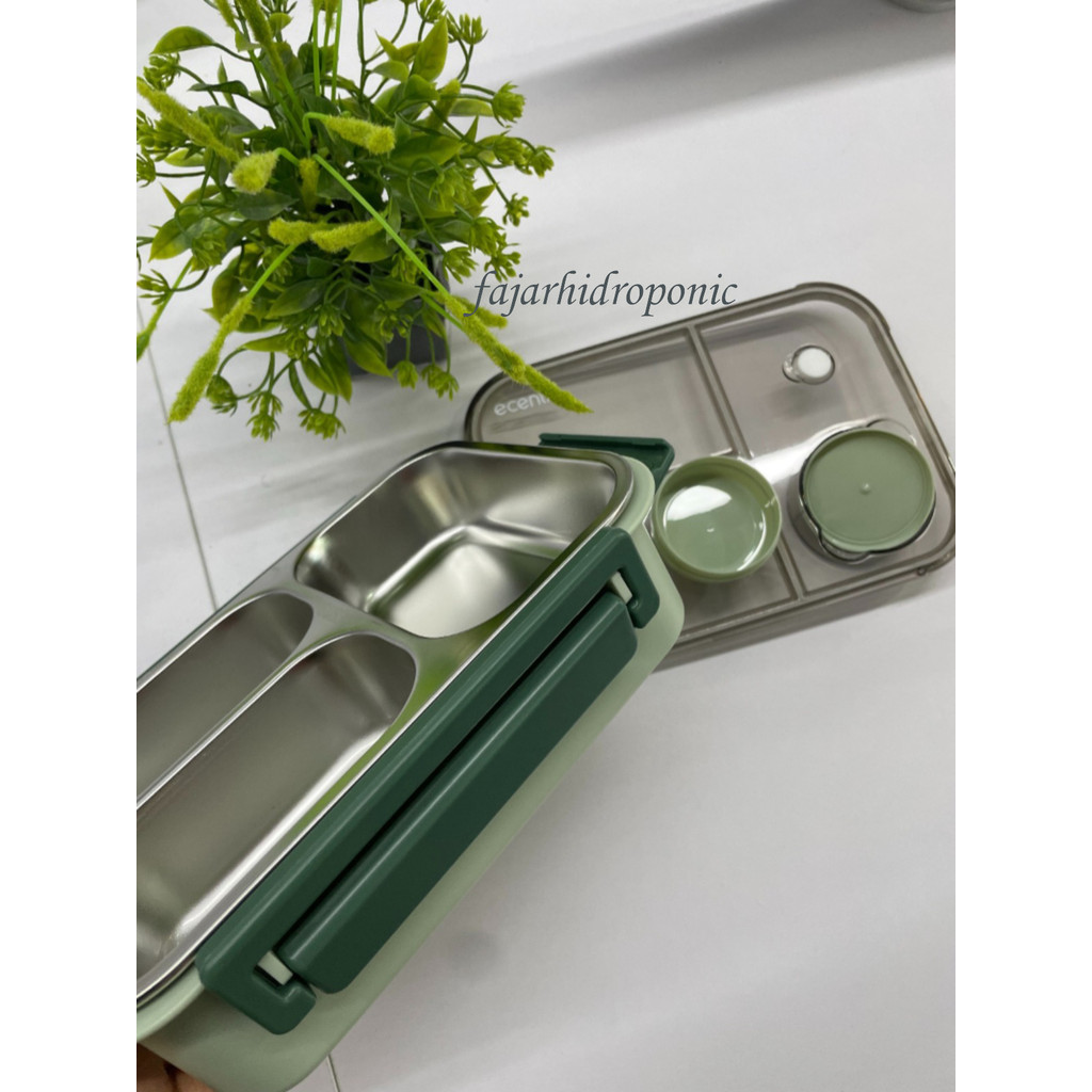ecentio lunch box stainless 800ml sekat 3 dengan sendok sumpit free kotak sauce kecil dan ecentio tumbler 900ml