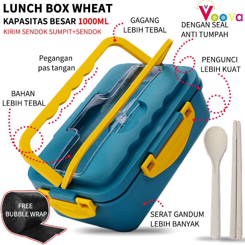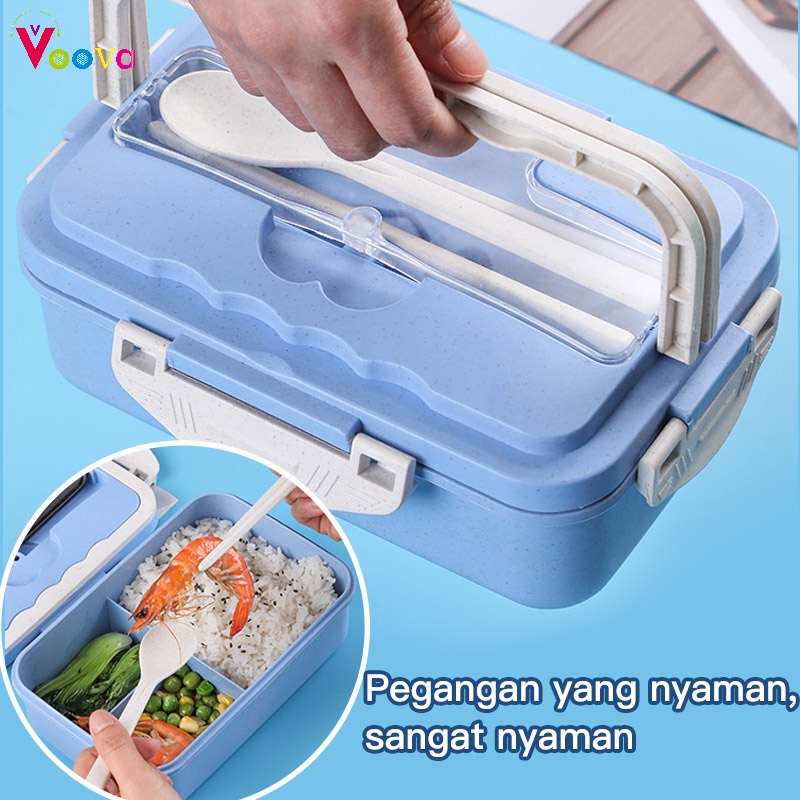 VOOVA Lunch Box Kotak Bekal Makan Siang Bahan Jerami Pegangan melengkung + Sendok Dan Sumpit memiliki kemasan karton | B