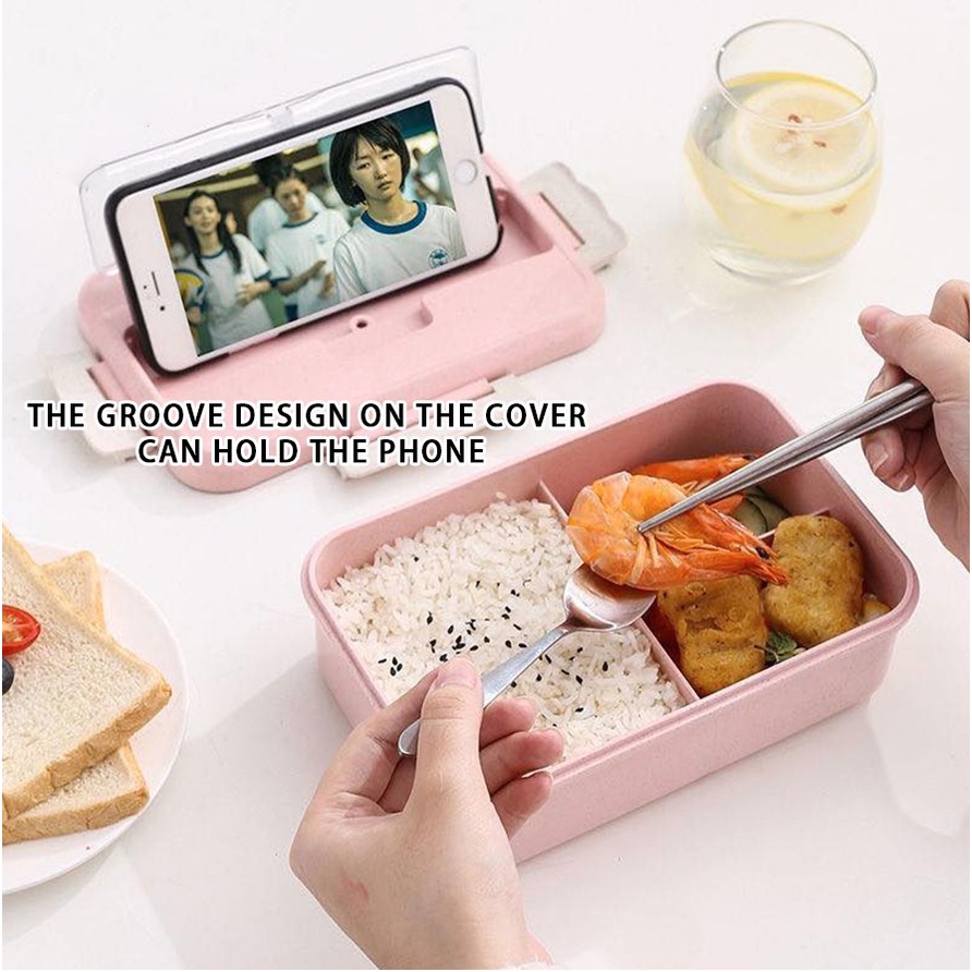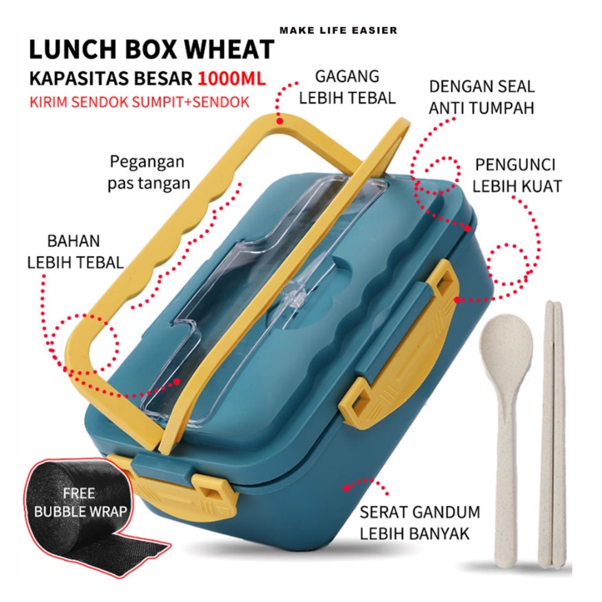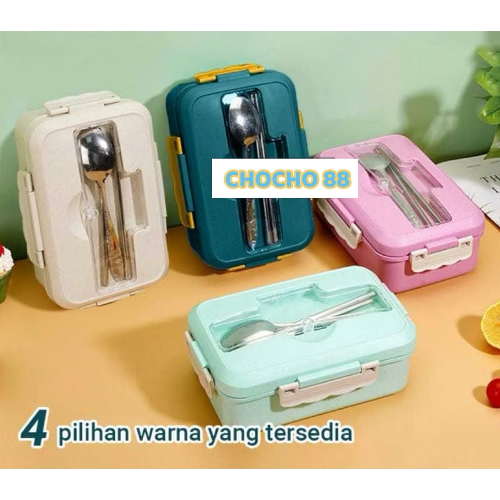 Lunch Box Set Kotak Bekal Makan Jerami Gandum kotak makan 1000ml 4 In 1 Free Sendok Tempat Makan 88