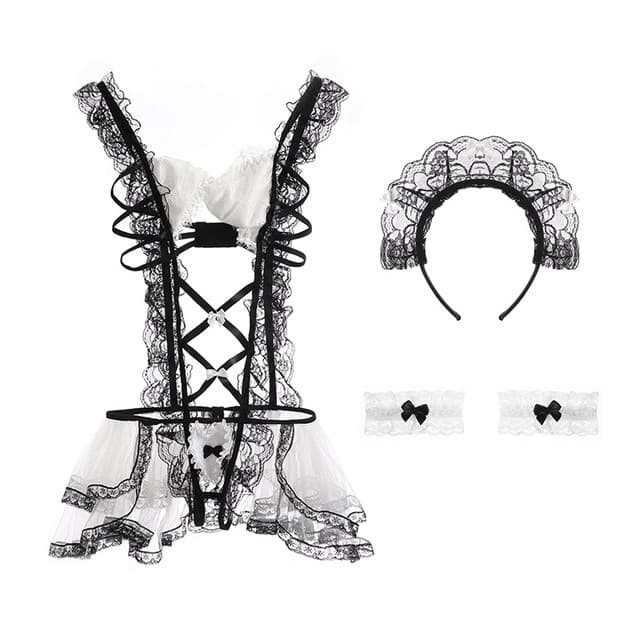 [Mall] LINGERIE SEXY COSPLAY MAID TRANSPARAN BODYSUIT BAJU TIDUR SEXY WANITA 3117