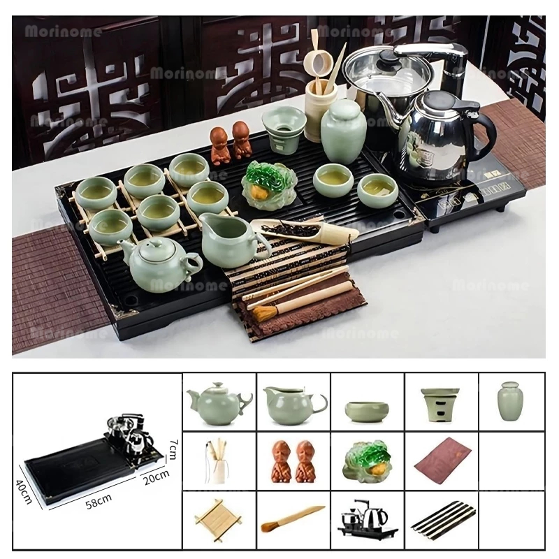 ✨&Garansi✨Chines Tea Set KungFu Tea Set Elektrik Teapot Full Set Tray Set Tradisional Teh Rumah R Tamu R Minu