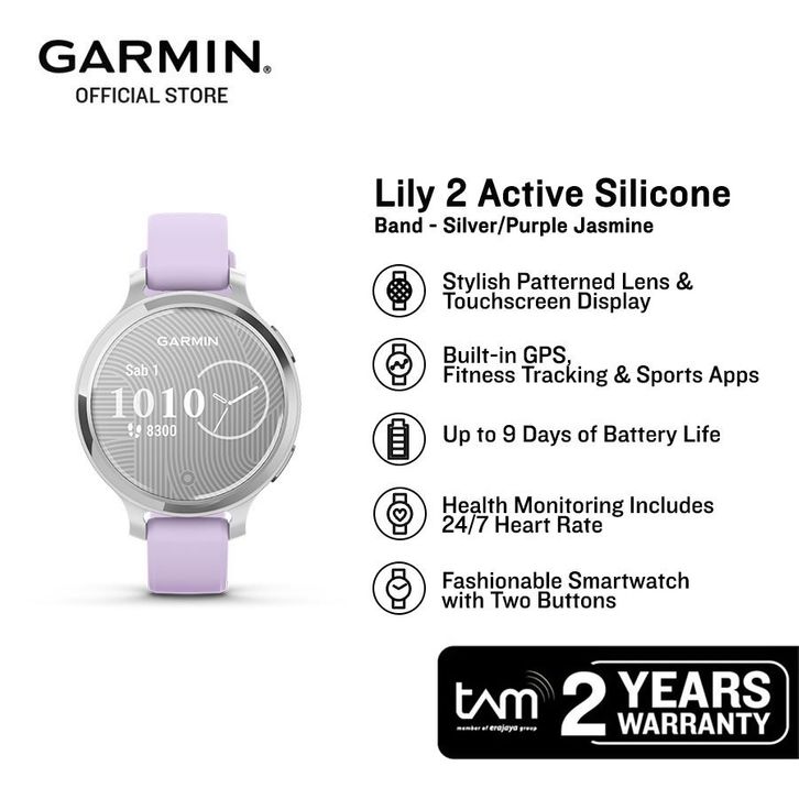 Garmin Lily 2 Active Silicone Band - Silver/Purple Jasmine