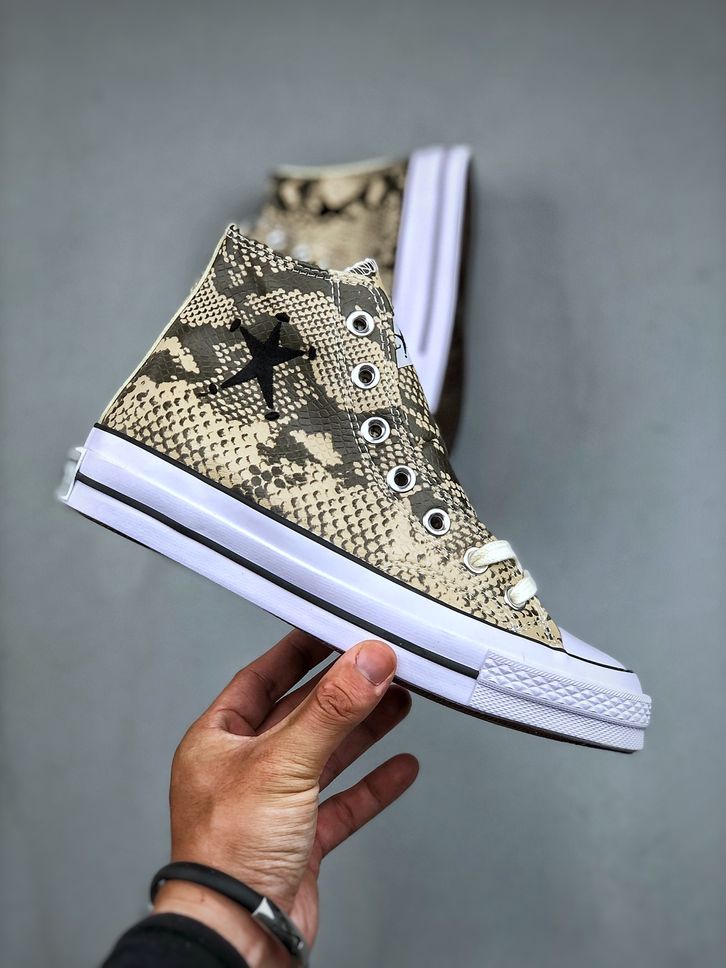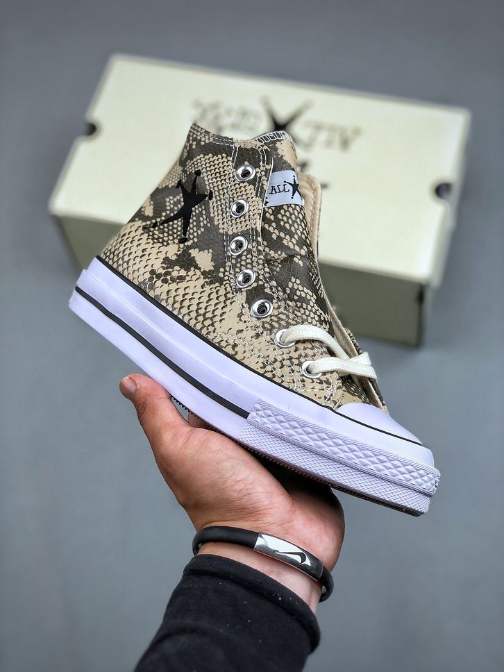 Stussy X Converse Chuck Taylor All Star 70s High Snakeskin Multi Color White Black Tan A11674C