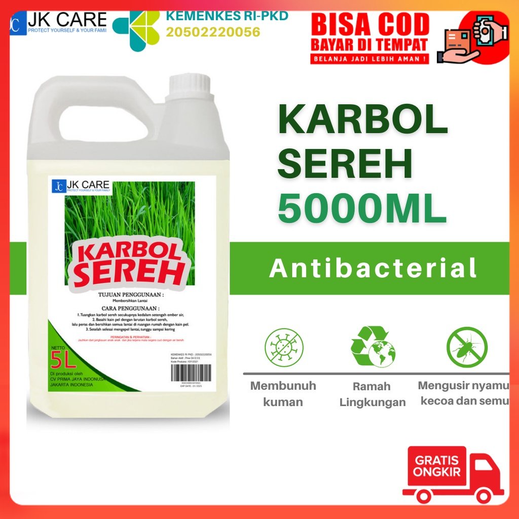 JKCARE Karbol Sereh Pembersih Lantai Antibacterial Wangi 5 Liter