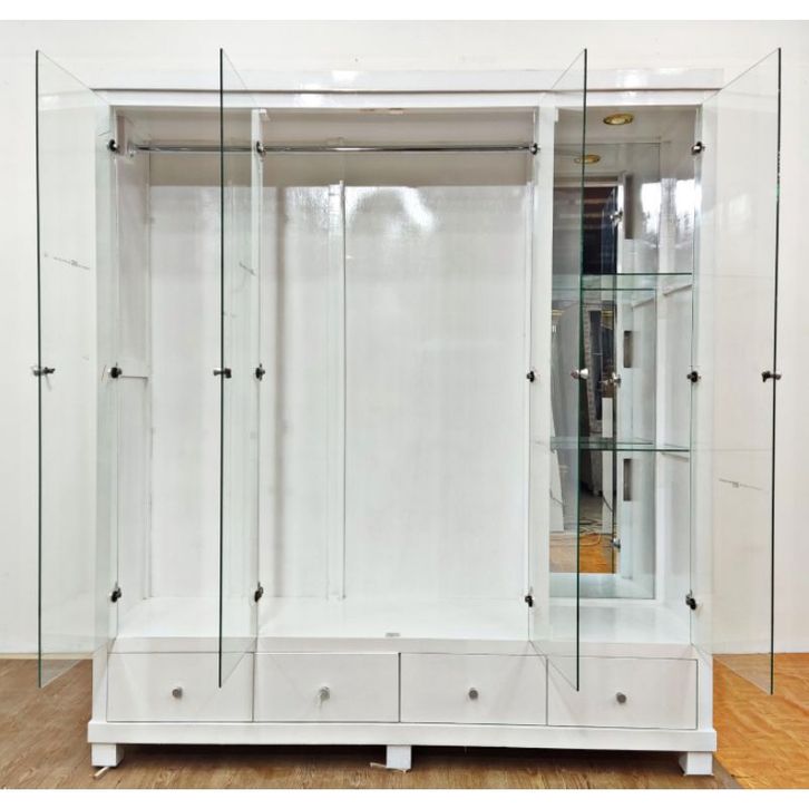 Lemari Gamis 4 Pintu Minimalis 3 Pintu Gantungan 1 Rak Kaca