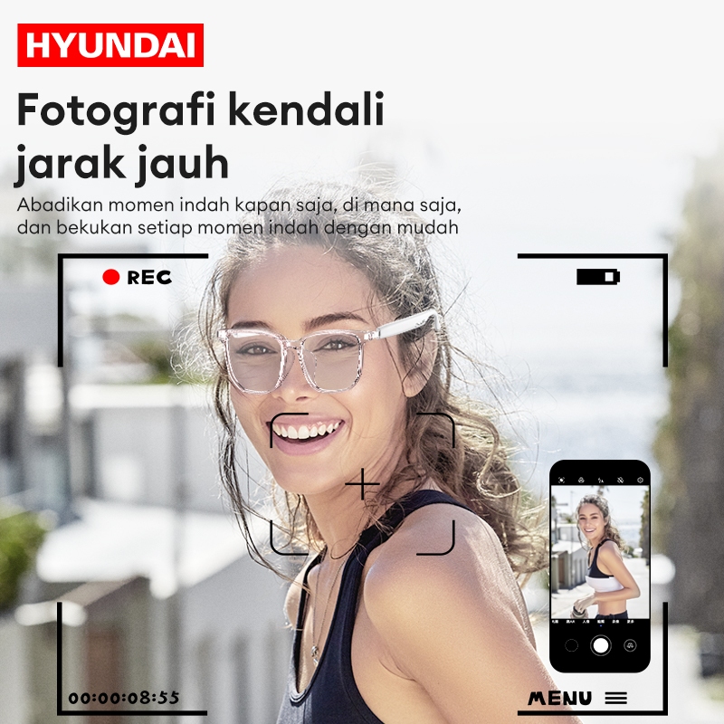 Hyundai HY-C8 PRO Kacamata Pintar Headphone Bluetooth 5.4 Kacamata Hitam Kacamata Bluetooth Cerdas Nirkabel